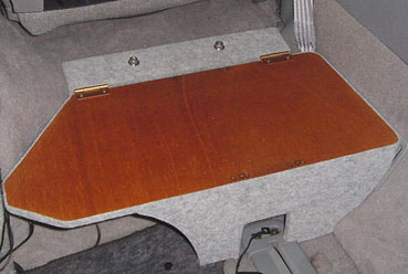 | TOPにはニスを塗り、側面はおなじみパンチカーペットを貼りました。 |