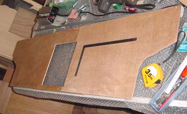 次に、インバーターなどのユニットを貼付けるボードの製作です。